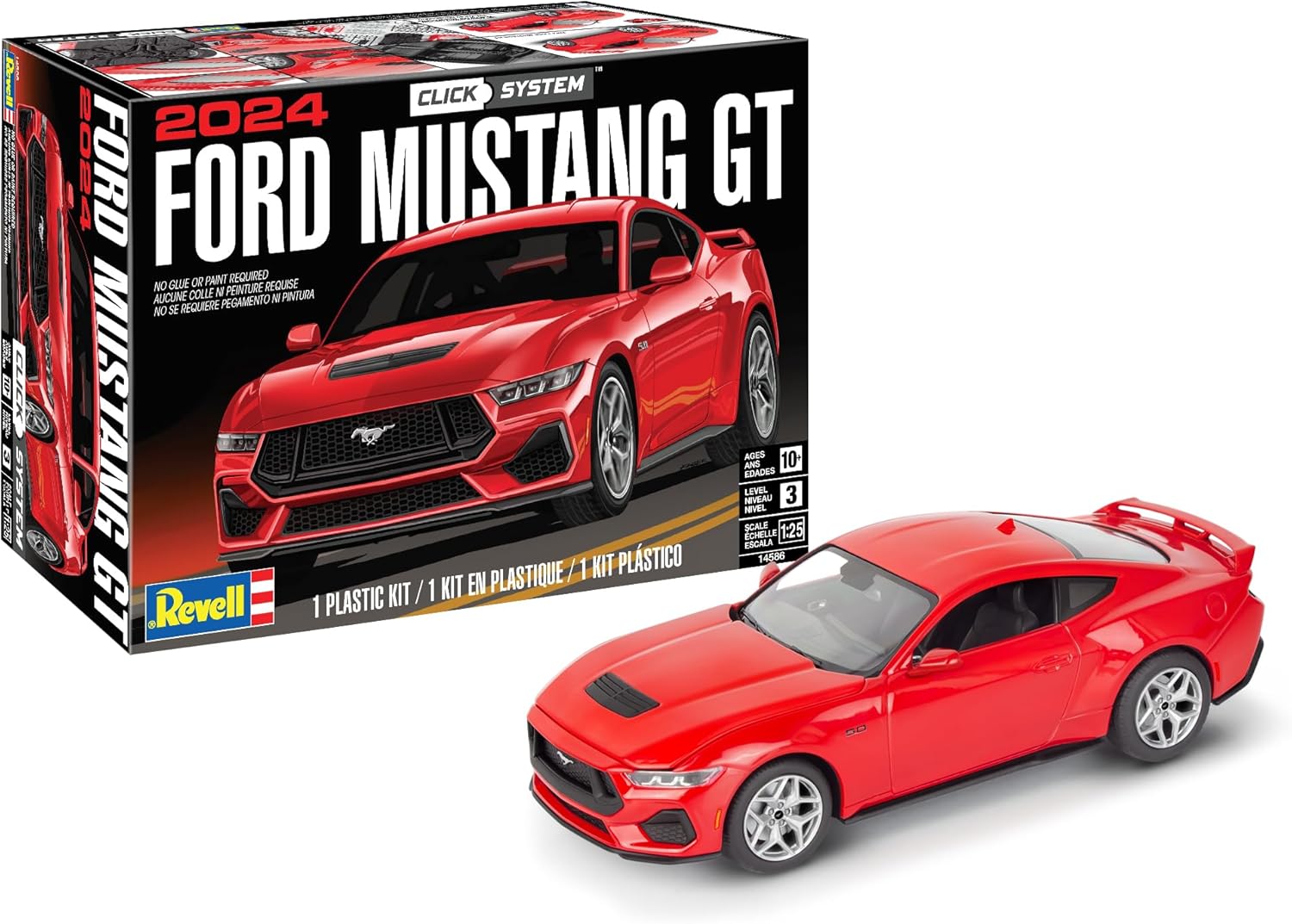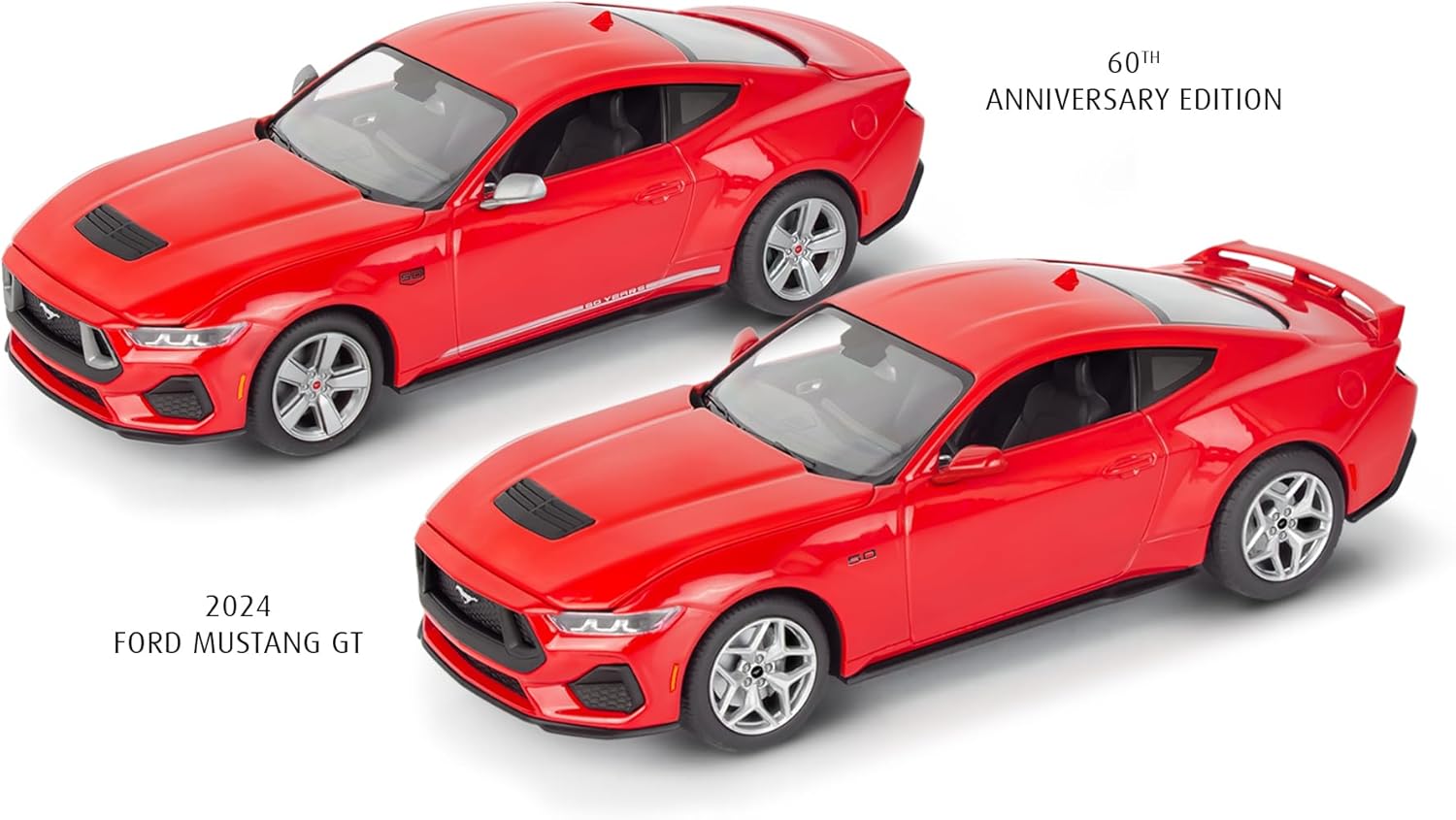 Experience the thrill of American muscle with Revell’s 1/25-scale 2024 Ford Mustang GT 5.0 model kit—a dynamic 65-piece set designed for builders aged 10 and up. Capturing the bold styling and performance of the latest Mustang GT, this plastic model features precision-fit parts molded in red, silver, black, transparent red, and clear, plus authentic soft tires for added realism. This kit showcases a highly detailed one-piece chassis with underside engine detail, a multi-piece interior, rotating wheels, and optional components to replicate the specially equipped 2025 60th Anniversary Mustang. With sharp body lines, an aggressive grille, and the signature tri-bar taillights, this carefully engineered kit blends the Mustang’s legendary design with modern innovation to offer an exciting build experience.