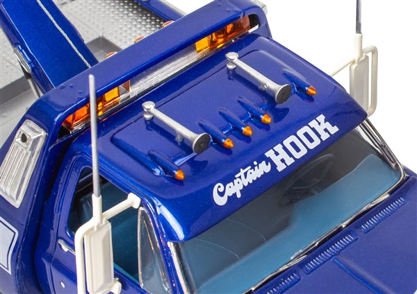 The unforgettable 1979 GMC Captain Hook marked the truck maker’s entry into the wrecker business. With the help of Holmes, a leading supplier of wrecker equipment, Captain Hook combined GMC’s C-3500-series cab-and-chassis with a beautifully styled fiberglass wrecker body equipped with hydraulic boom and winch control. Revell’s easy-to-assemble kit captures the rig’s head-turning design that helped make GMC truck centers THE place back in the day!